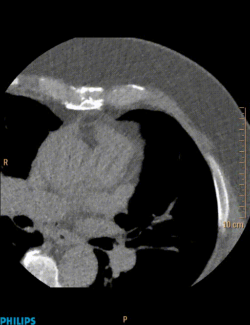 This is a relatively fast test and does not require any injections. You will be asked to lie flat on the CT table and some ECG leads are attached using sticky patches on your skin. This allows the scanner to be synchronised with the hear rhythm The table then goes into the “donut” of the CT machine. The CT scanner does deliver a small dose of radiation that approximately the same as a mammogram. The images are presented as slices taken through your body which allows the doctors to assess the calcium in the arteries. This can counted and quantified to provide a score, which is useful in estimating the chance of a heart attack in the future.